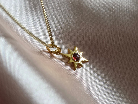 18k Gold North Star Pendant with Garnet