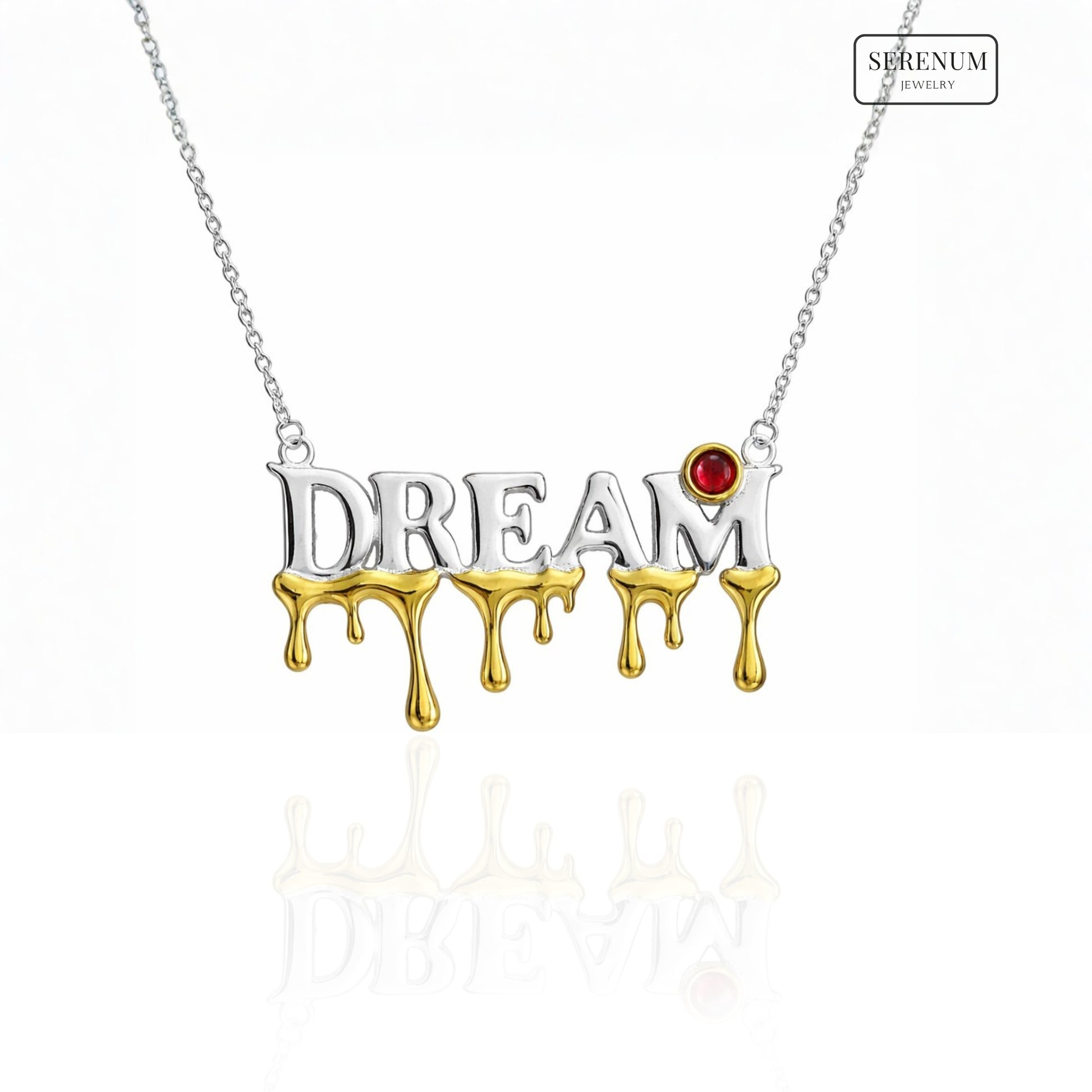 Carry your dreams close to your heart with this enchanting DREAM necklace, handcrafted in solid 925 sterling silver and finished with 18k gold plating, adorned with a glowing natural garnet gemstone. The word DREAM is a powerful symbol of intention, hope, and manifestation — a reminder to trust your inner vision and stay aligned with the life you are consciously creating.