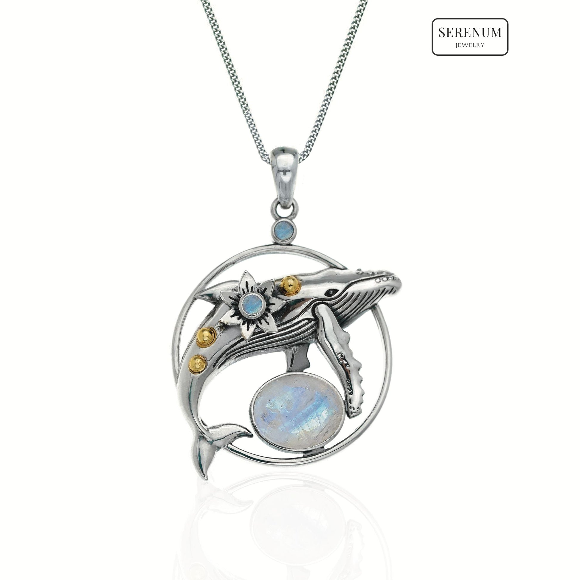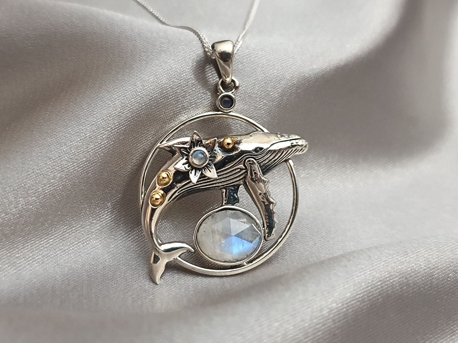 Silver Deepwater Whale Pendant with Moonstones